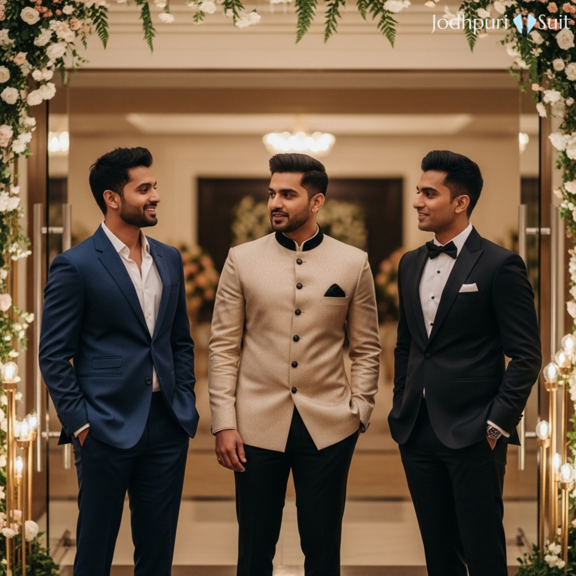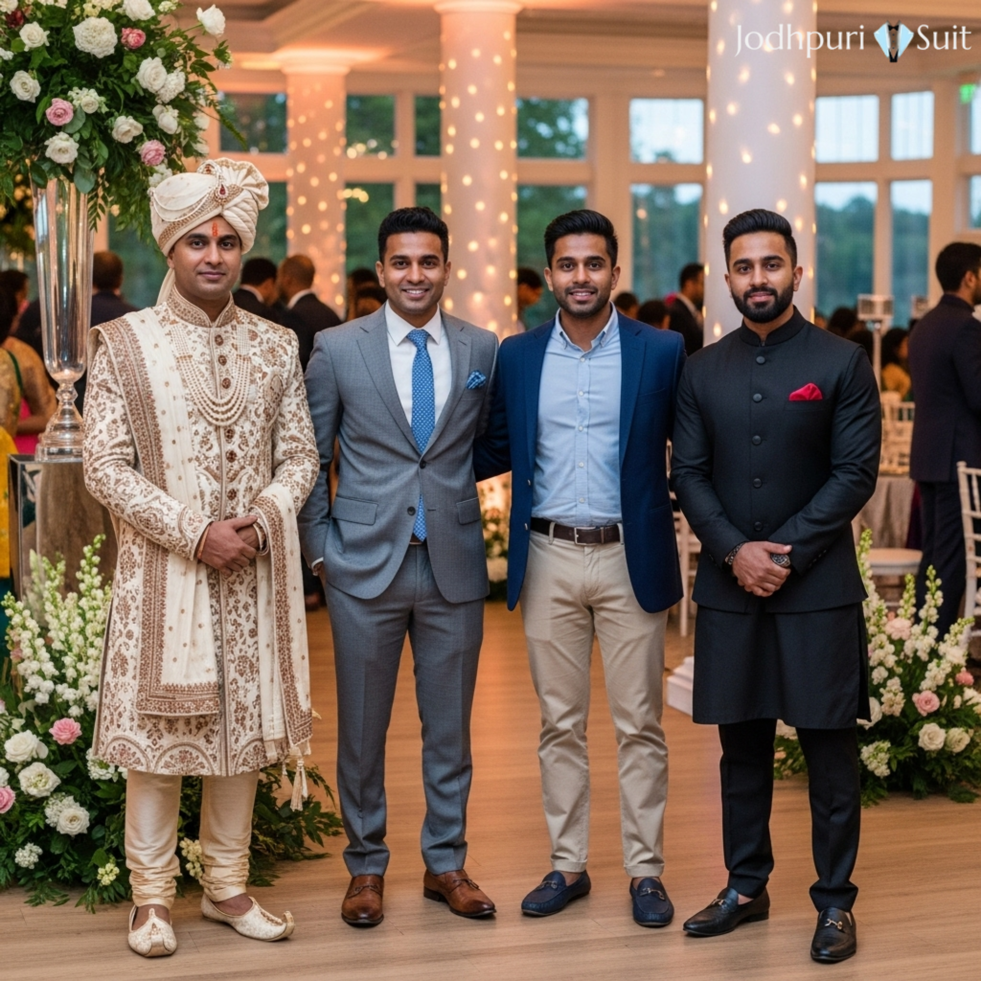 Want something that feels more "you" if Western suits aren't your style? Wedding reception groom dress in Indo Western cuts gives you options. Jodhpuri jackets, bandhgala suits, or those sherwani-blazer combinations that somehow work.